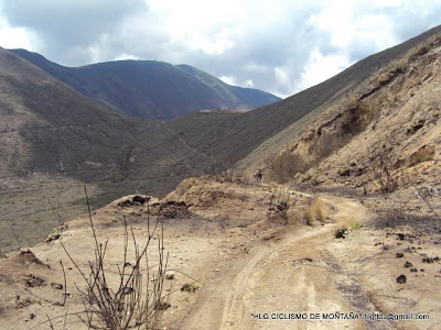 Bueno continuando con la historia terminamos el ascenso completo en una media hora y nos tomamos la respectiva fotito en el mirador, inmediatamente bajamos hacia la autopista y como aun quedaba algo de energía, el Paco nos sugirió seguir descendiendo por un lado de la carretera y desde la virgen es decir nos toco subir por asfalto como unos dos Km par tomar este sendero, esta vez ya en una zona extremadamente árida para esto Juan Carlos ya estaba con un dolor en la parte posterior de la rodilla, ya me había comentado sobre eso pero no creíamos que era muy grave y siguió pedaleando.